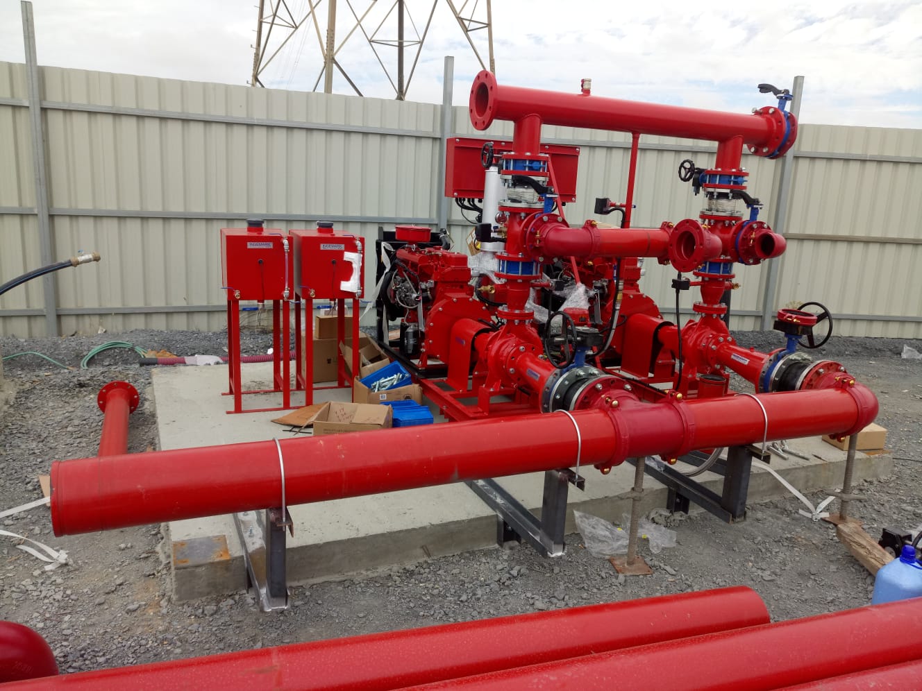 Instalación de sistema de abastecimiento de agua contra incendios, red de hidrantes y casetas de dotación.
