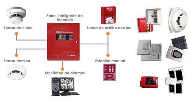 Están compuestas básicamente por: Central de señalización y control; Detector/es de incendios; Dispositivo/os de alarma; Pulsador/es de alarma, entre otros.